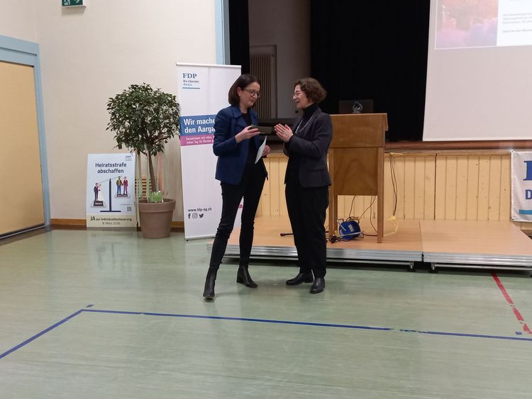 Mit Spannung erwartet wurde der erste Auftritt von Susanne Vincenz-Stauffacher, Co-Präsidentin der FDP Schweiz, im Kanton Aargau. Sie berichtete über aktuelle politische Herausforderungen auf Bundesebene und setzte ein Ausrufezeichen für die Individualbesteuerung als zentrales freisinniges Anliegen. „Die FDP ist und bleibt die liberale Kraft, die die vernünftigen Lösungen einbringt, wenn andere Parteien im Populismus oder Protektionismus verharren. Wenn wir für die Menschen in unserem Land den Wohlstand und die Sicherheit sichern wollen, führt kein Weg daran vorbei: Wir müssen wieder sachpolitisch, lösungsorientiert und mit An-stand politisieren. Das braucht Mut und politische Redlichkeit.